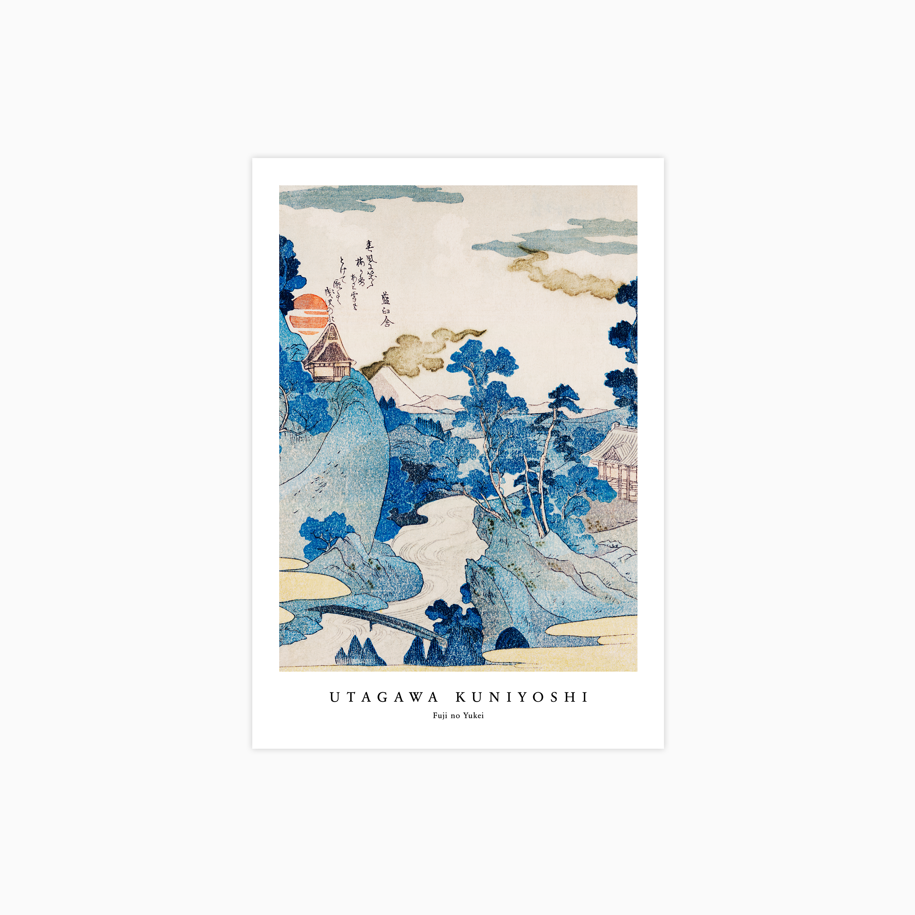 Une œuvre d'art fascinante du maître japonais Utagawa Kuniyoshi - Fuji no Yukei montre un paysage pittoresque avec le majestueux Mont Fuji en arrière-plan, de douces rivières et des tons bleus lumineux. Un poster intemporel qui fait entrer l'art traditionnel japonais dans ton intérieur.