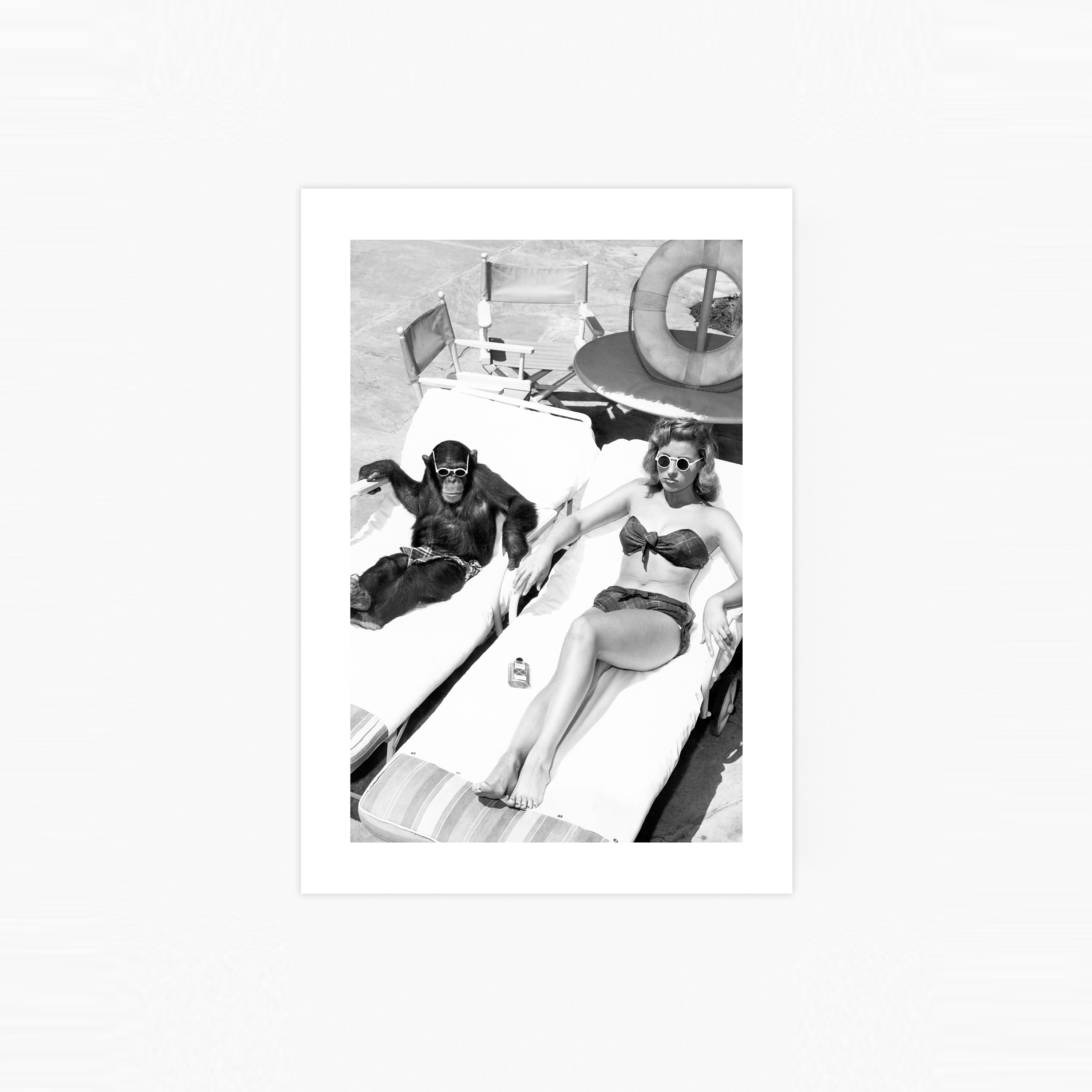 Découvrez une affiche qui allie parfaitement style, humour et tendance ! Un véritable accroche-regard qui ne manquera pas de faire parler : un chimpanzé en maillot de bain et lunettes de soleil – un spectacle que l'on ne voit pas tous les jours. Ce tirage ajoute une touche unique à n'importe quel espace et est un incontournable pour les amateurs d'art original. Un passe-partout blanc intégré encadre élégamment le motif. Explorez notre collection complète de photos iconiques dans la catégorie « Icônes et Légendes » et laissez-vous inspirer !