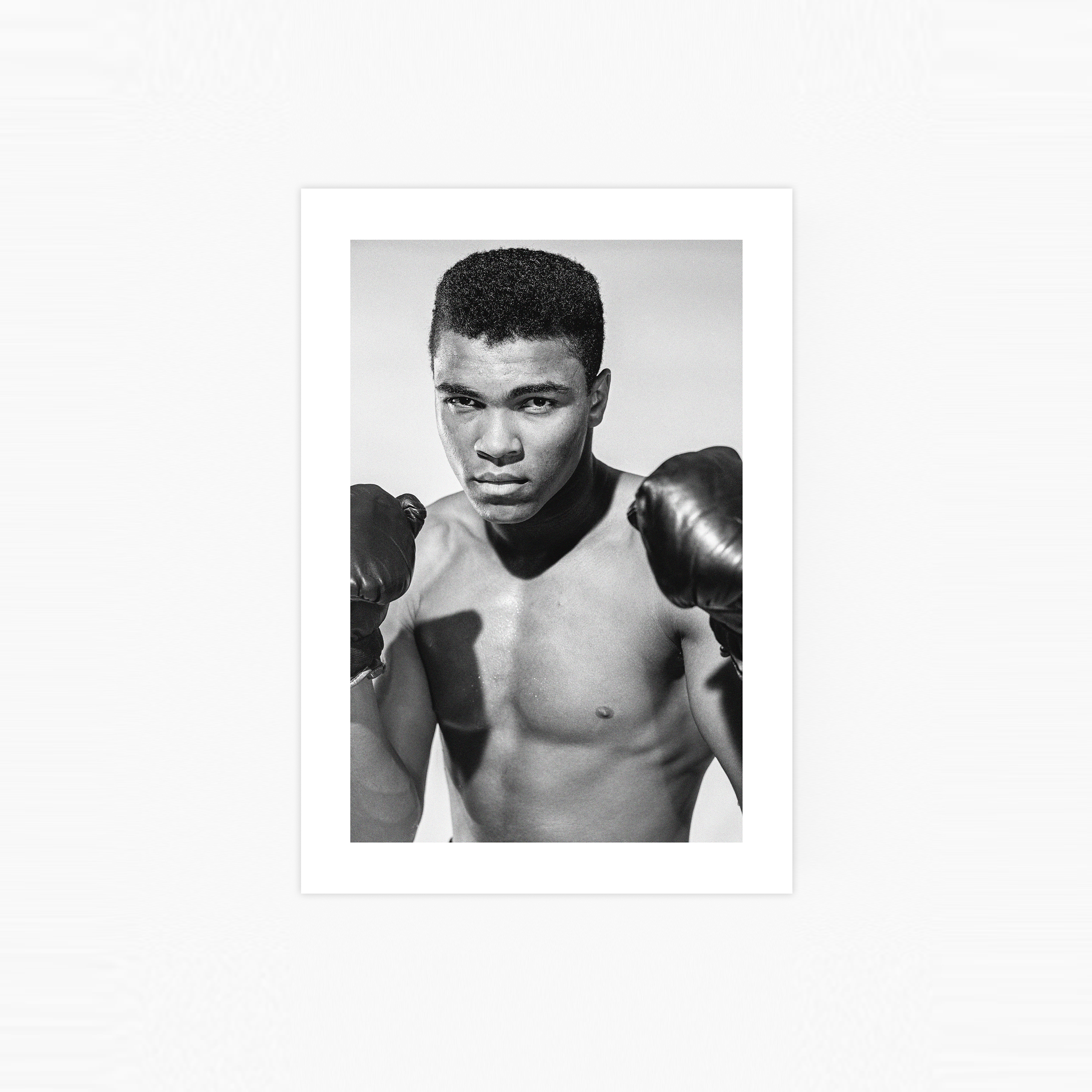 Une œuvre photographique emblématique de la légende Cassius Clay, plus connu sous le nom de Muhammad Ali. Avec 19 titres de champion du monde à son actif, il est incontestablement l'un des sportifs les plus iconiques de tous les temps. La texture granuleuse de l'image renforce son caractère rétro et ajoute de la profondeur à la photographie. L'affiche de Muhammad Ali est dotée d'un passe-partout blanc intégré qui encadre élégamment le motif.